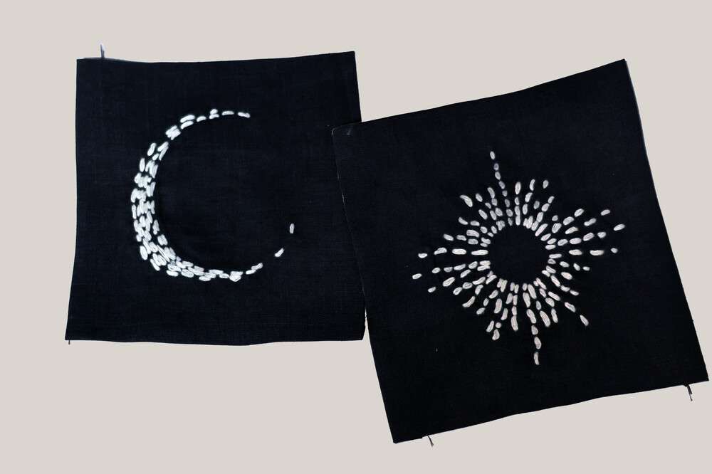 손바느질로 도안을 만들고, 적절한 자수 생산 방식을 선택한 작년 여름 제품이 이렇게 탄생 되었습니다.