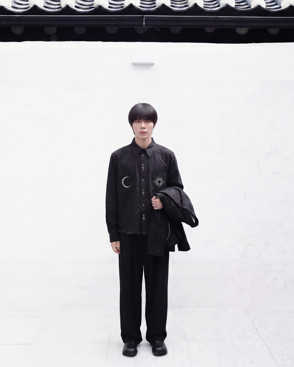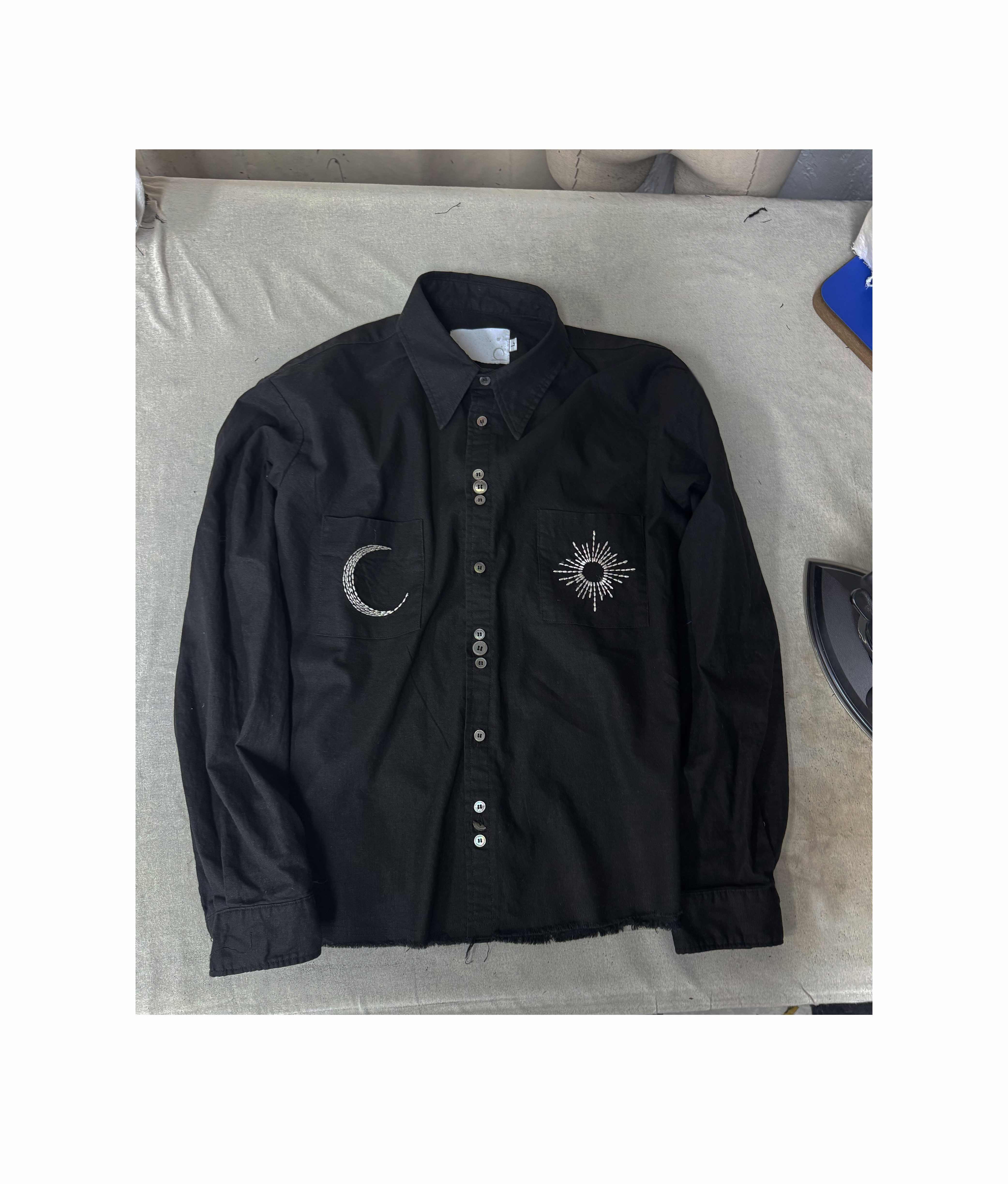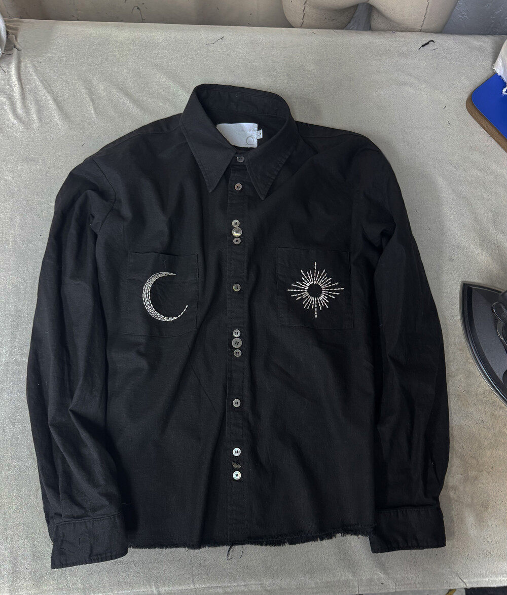 셔츠의 메인 자수는 손바느질로 도안을 만들고 핸들 자수로 한 벌씩 표현해냈습니다.